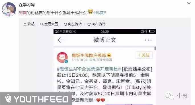 有人在微博上感慨,郑爽的粉丝真是想做什么就能干成什么,在最近的魔饭生偶像应援部的投票里,爽妹子是唯一一个跻身前五名的中国女艺人;
