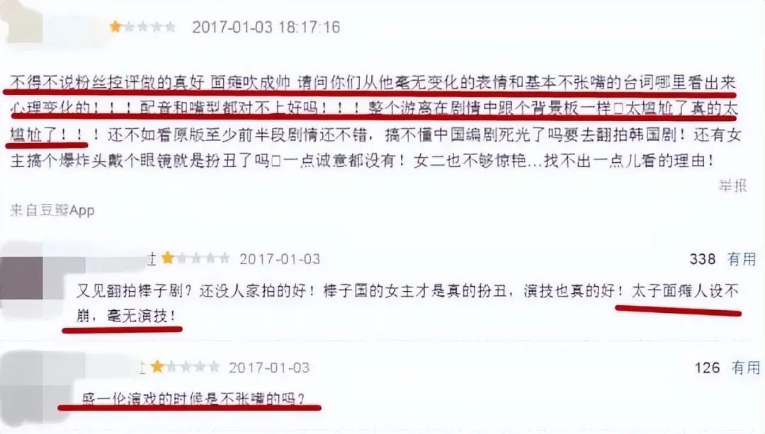 不仅给《漂亮的李慧珍》打上一星,还特别认真地附带了原因:所以盛一伦演戏是从来不张嘴,从来没情绪的吗?