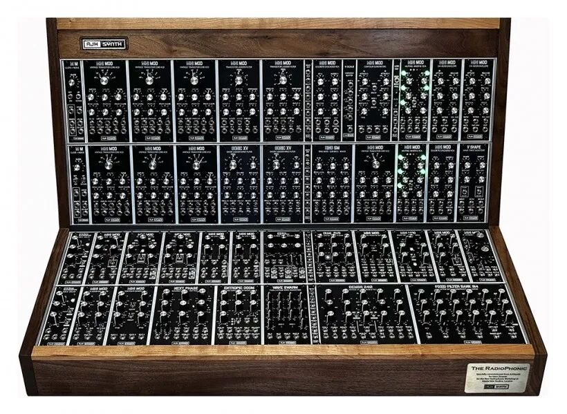 这些模块的选择和音质的可能性远远超过了在 Radiophonic Workshop 中使用的大型 EMS Synthi 100 “Delaware” 系统。AJH Synth Radiophonic 合成器有四排共 48 个模块,使用噪音极低的电源和噪音过滤配电板。