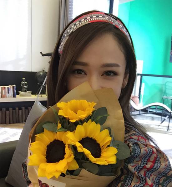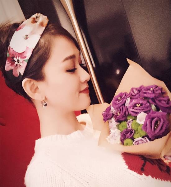 侧分头发并扎出一个中高丸子头的形式,陈乔恩选用了一款绿色和白色花朵图案的发带固定在丸子之上,这样复古的造型搭配她也是美极了呢。