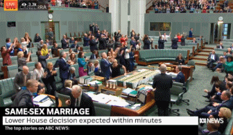 今天下午6点,澳洲众议院一举通过了同性婚姻合法化法案。
