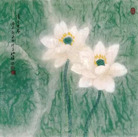 如今,当她再次出现在大家面前的时候,不是以演员的身份,而是以书法家、画家的身份。张金玲的人生迈入了另一片天地———她师从齐白石的入室弟子娄师白,苦练书画十五年,如今其书画功力已受到各方专家认可,并在各地举办了个人书画展。齐老曾说“学我者生,似我者死”,张金玲无疑是师祖箴言的忠实践行者。她以传统的水墨手法画鱼画虾画蟹,笔法灵动,栩栩如生;又以彩墨点染,画花画草画美人,意境朦胧,如梦似幻。她画的尤其多的是荷。墨荷红荷青荷,梦里静谧的荷塘,狂风中的雨打新荷。我一向爱荷,于是暗暗地揣测,她大约也是真的喜欢荷。毕竟她活得就像一株荷——有亭亭玉立的风姿,也有莲实莲藕般清新的果。