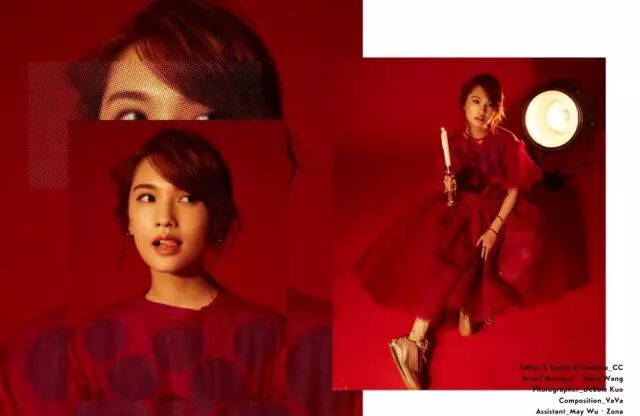 就是这组片子啦,红色的背景、红色的服装搭在一起完全没有不协调的感觉,反而让杨丞琳的风格更加凸显。