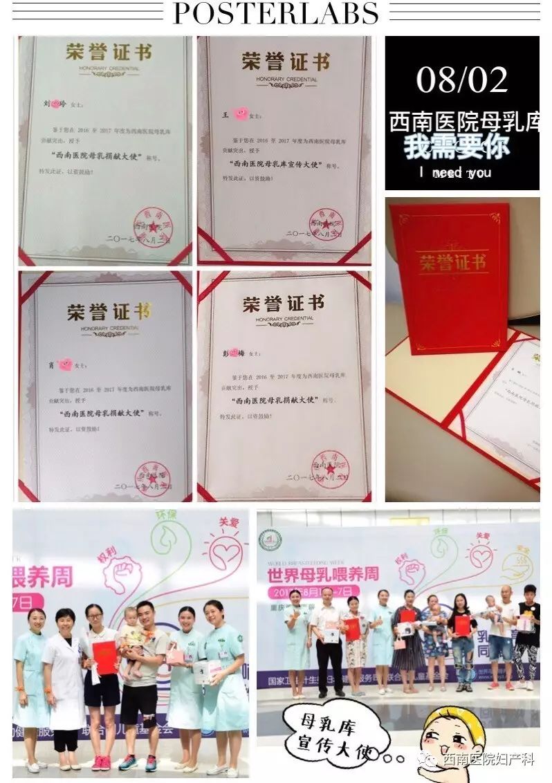 现场为2016-2017年度西南医院母乳捐献大使、母乳喂养宣传大使颁发荣誉证书,愿我们的爱心继续传递下去。。。