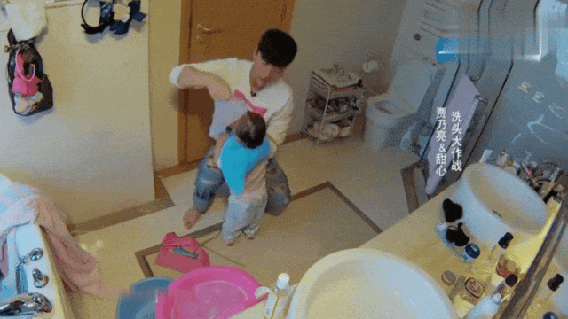 还有他给甜馨洗头,不会给她仰抱着冲水,只能让甜馨站着,小孩眼睛被辣到,哭得撕心裂肺。