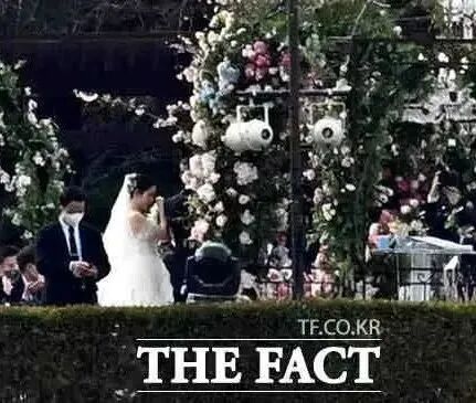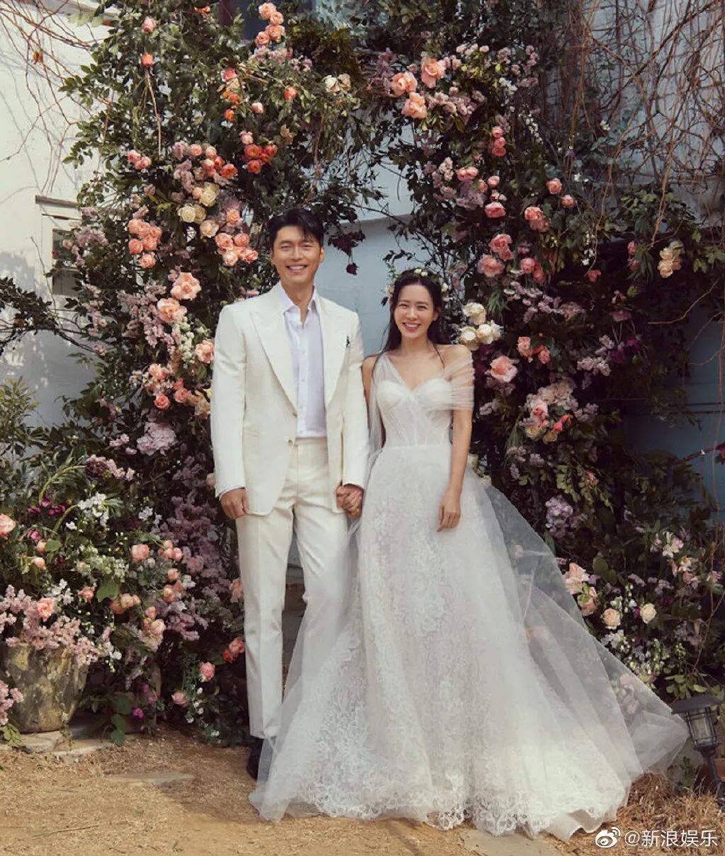 晚些时候,两位新人的另一套礼服曝光,孙仙的背影像是春日的精灵,依偎在玄彬身旁。