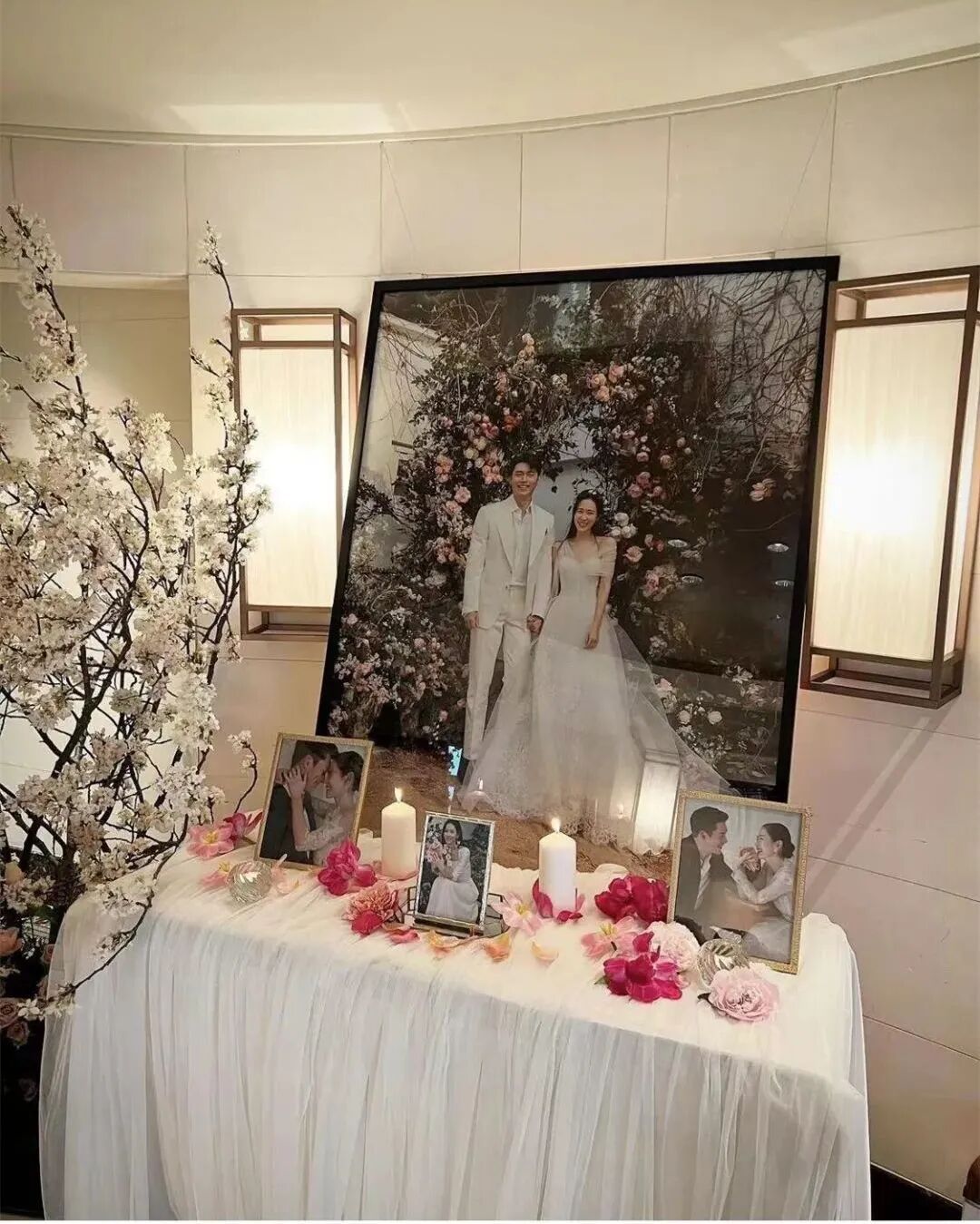 颜值天花板不是白叫的,室内布置用的几张婚纱照,远远看着都觉得般配美好。