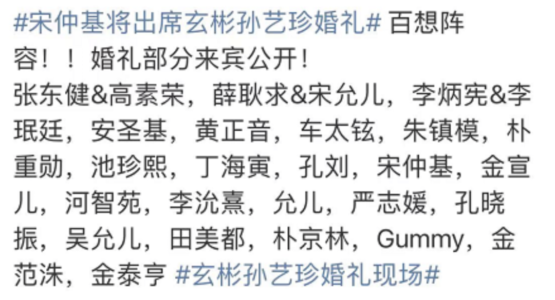 果然娱乐是个圈啊,玄彬孙艺珍婚礼瞬间变成宋慧乔前男友大型团建。