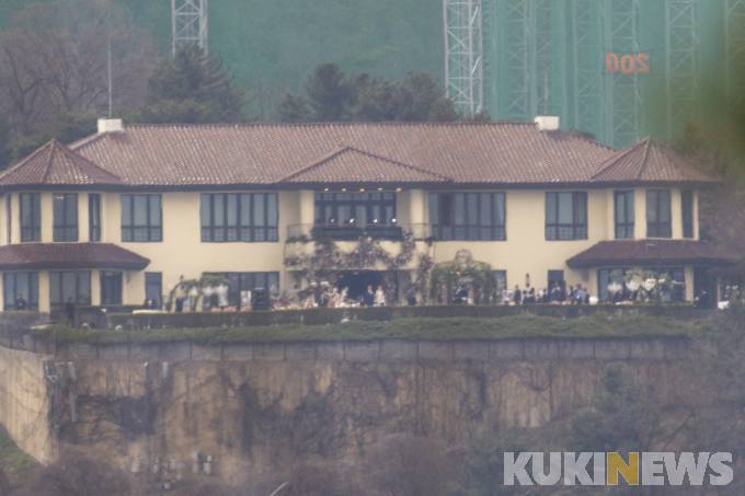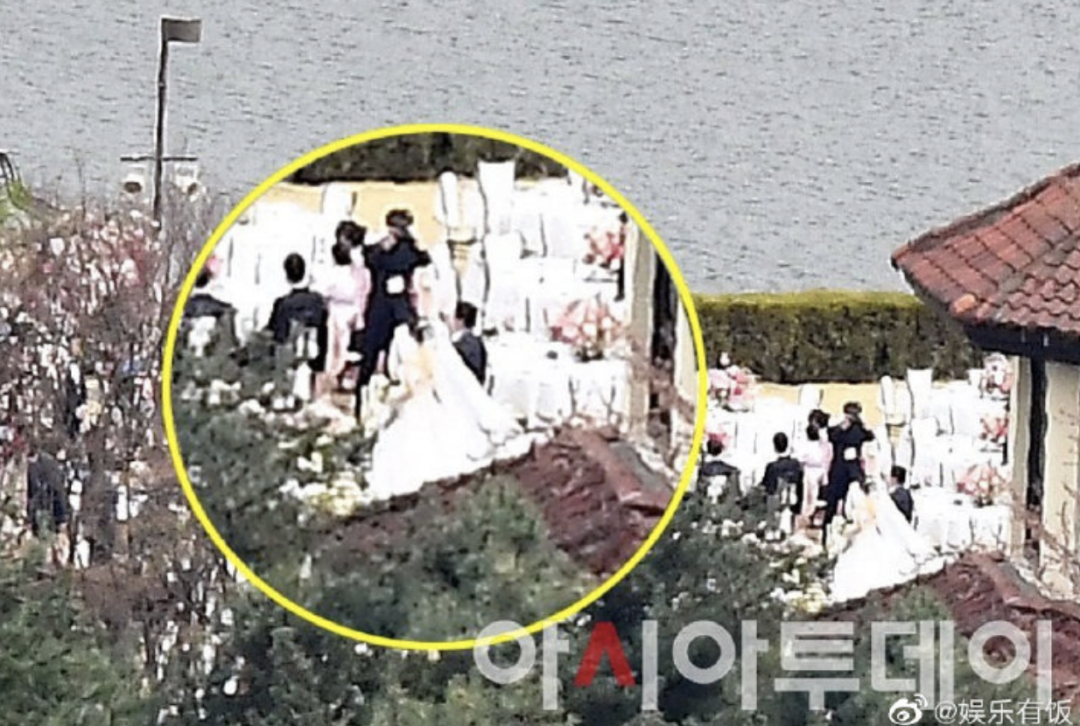这场婚礼没有邀请媒体,一人一卡才能进入会场,狗仔们实属不易,扛着相机蹲守在另一头,与婚礼现场遥遥相望。
