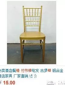 婚礼现场的椅子被好事的网友扒出某宝同款只要15元,别跟我说什么某宝的就是劣质又便宜,就算很贵这个椅子也丑哭了好么!对了,这对花童可以给个好评!