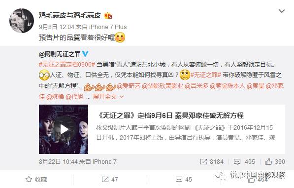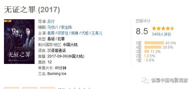 华谊执行总裁王中磊、著名导演谢飞、《河神》出品人陶昆、导演&演员徐静蕾,以及姚晨、吴樾、许晴、马苏等影视圈巨匠齐声点赞,豆瓣评分高达8.5分……翻看最近影院名单,除了《敦刻尔克》,也就只有《蜘蛛侠:英雄归来》能符合这一阵容的强力推荐了。很难想象,这些好评竟都是为了网剧《无证之罪》而来。