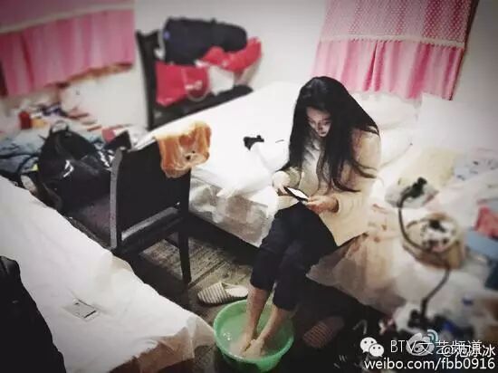 昨天,范冰冰在微博晒出两张照片,写道:“这样的日子也挺好,谁不是从这个时候过来的,真没什么大不了!”一张照片中,范冰冰坐在床沿,一边在塑料盆里泡脚,一边低头玩手机;另一张照片中,她的裤脚高高挽起,穿着拖鞋对着塑料盆刷牙,看上去很接地气。据悉,她这是去西藏体验生活。