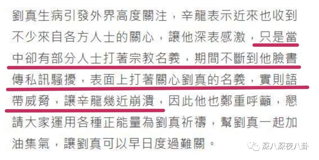 那个时候辛龙在媒体上呼吁大家为刘真祈祷,说刘真现在需要大家为她祷告,给她力量,甚至表示愿意用自己的命去换刘真的命