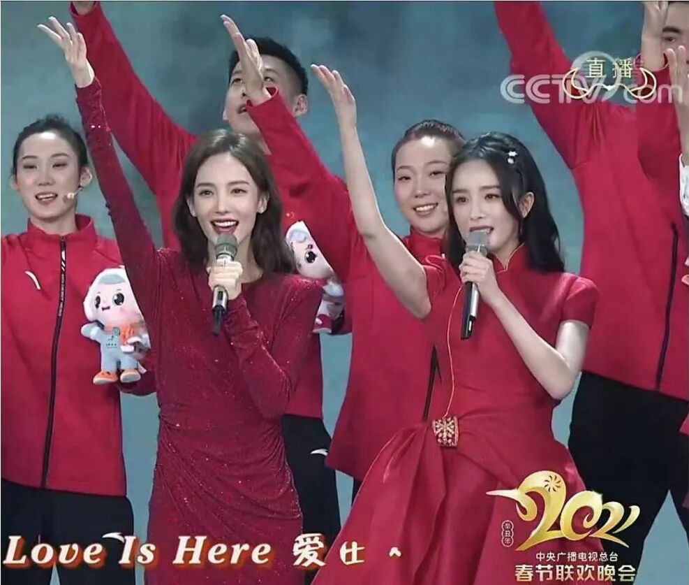 杨幂自己和自己比就可以看出,春晚和直播时的眼睛状态明显不同。春晚的杨幂眉眼状态比较放松,而在直播间的杨幂眼睛是完全“睁开”的。