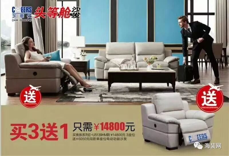 凡购买芝华仕头等舱沙发可半价换购配套产品(按摩椅、茶几、地柜、餐桌、餐椅)