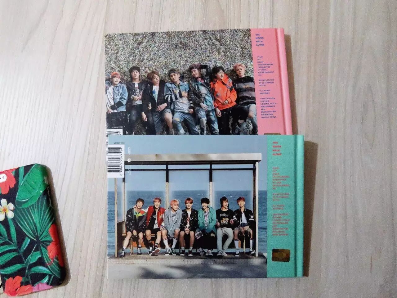 再来说说这次新出的后续专辑《WINGS外传:YOU NEVER WALK ALONE》,在之前的专辑上新增了4首新歌,还出了两款不同的专辑封面!一款粉色、一款薄荷绿,颜色不同也就算了,就连封底的大片也不同!