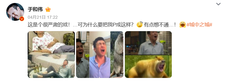 他的可爱之处还可见于坦荡直爽,于和伟第一次直播,连线好友雷佳音和贾乃亮。