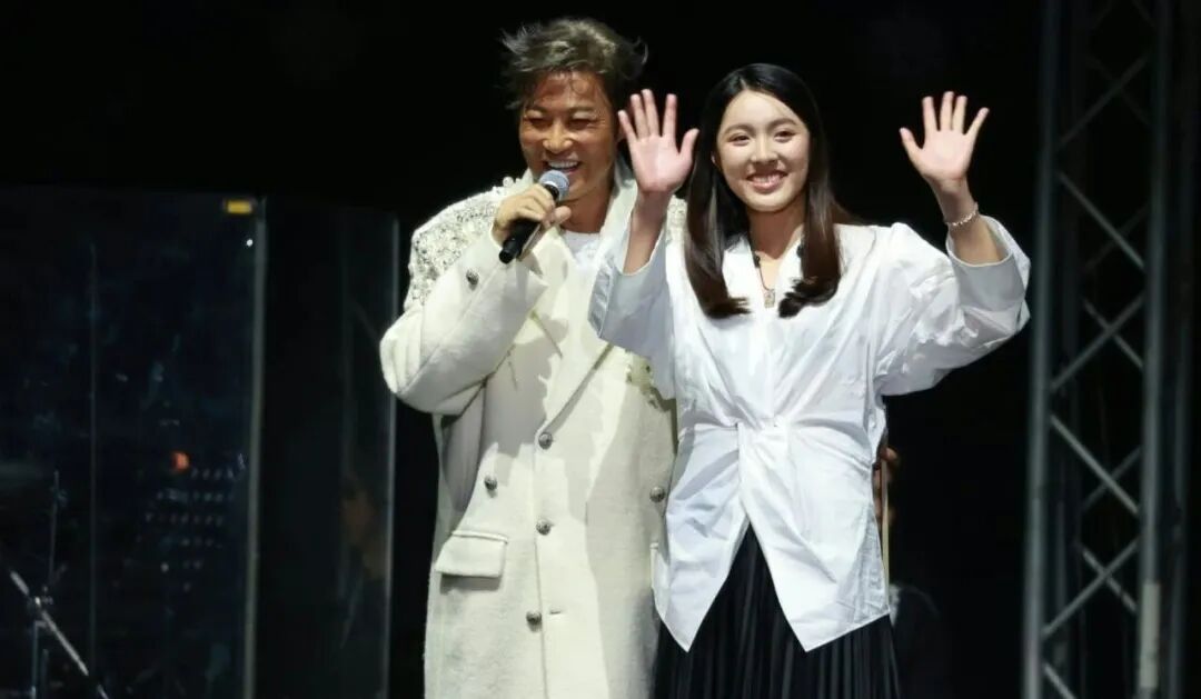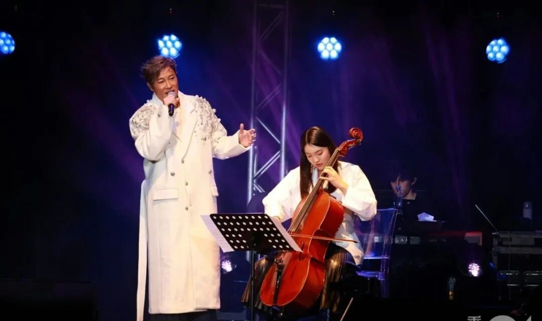 最惊喜环节,莫过于爱女Tamia登台与爸爸同台演出,她以大提琴为爸爸伴奏,温馨画面为演唱会掀起高潮。