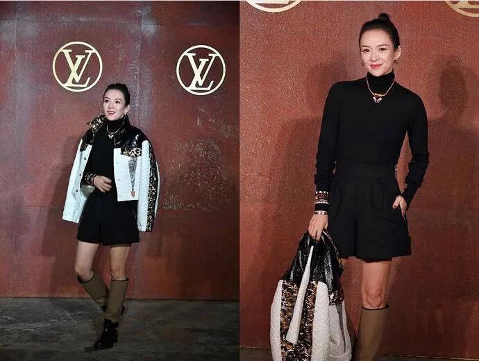 高领黑裙修身短版型,可以凸显女性的层次感,搭配棕色中靴,可以凸显成熟女性的稳重感。金色项链上的点缀可以有效缓解黑色的沉闷感。