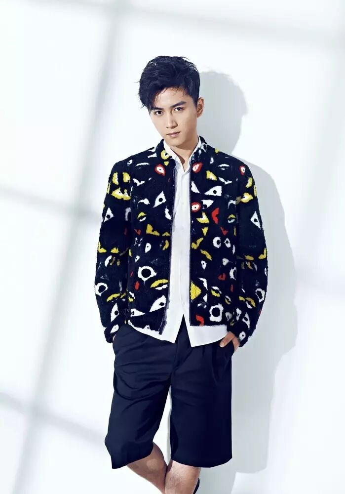 封面Look陈晓穿着Fendi2016春夏系列黑色绒毛涂鸦印花外套,内里搭配同季Fendi白色衬衫与黑色中长短裤。黑白搭配经典不衰,加上涂鸦印花,整体酷劲十足又不失风雅。