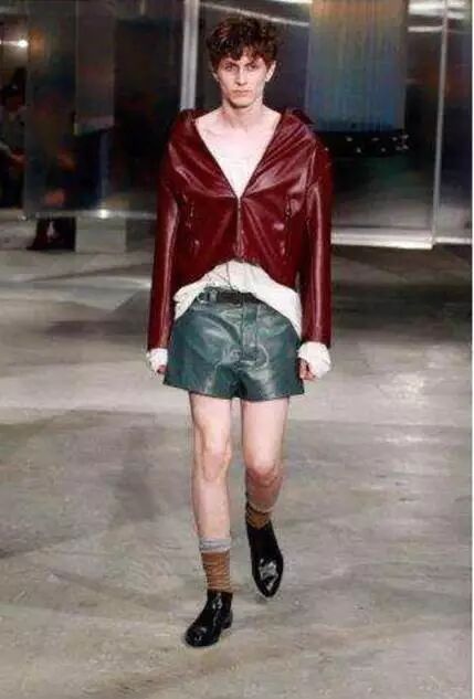 ▌紫红色廓形皮衣 Prada 2016春夏系列模特演绎