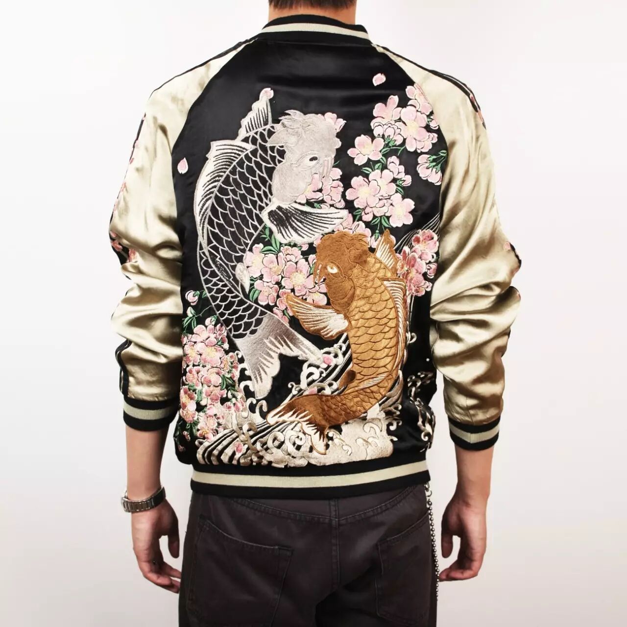 如此大热的飞行夹克火得不是没道理,街拍达人演绎下的飞行夹克复古有型又时髦,而很多人不知道的是这种刺绣夹克其实名字叫“横须贺”!二战后的横须贺港,大批美国士兵撤离回国,有一位士兵将他的飞行员夹克带到当地的一间裁缝店,要求师傅将自己的名字和自己的这段经历用彩线绣在夹克上,以作纪念。这就是第一件横须贺夹克的诞生。而如今横须贺夹克,掀起了一股从伸展台蔓延至街头的全新风潮。▼