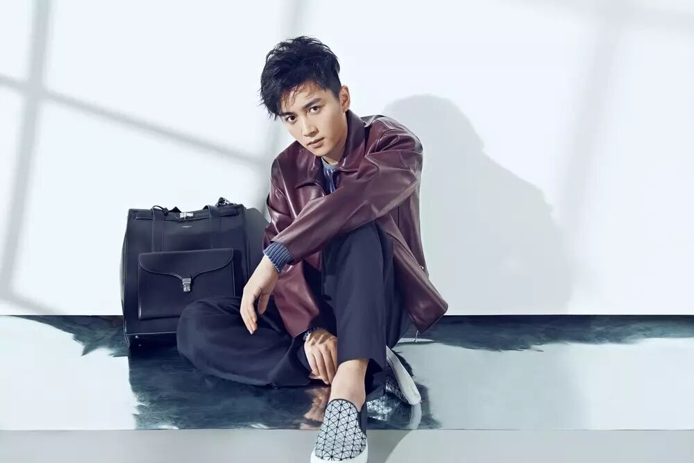第二套Look陈晓换上了Prada2016春夏系列紫红色廓型皮衣,里面搭配Giorgio Armani2016春夏系列水灰蓝条纹针织衫与Giorgio Armani2016春夏系列深灰宽腿裤。陈晓有型款款的蹲坐在地,身边PERNELLE黑色方形口袋皮包将一个霸道总裁范儿陈晓的呈现了出来。▼