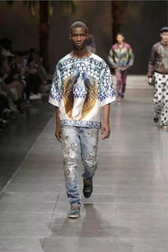 ▌印花上衣及刺绣牛仔裤 Dolce&Gabbana 2016春夏系列模特演绎