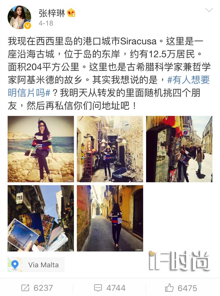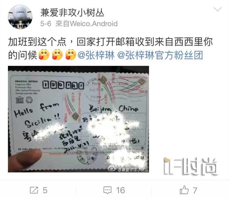 ▲对粉丝也超级nice,自己去旅行也不忘寄明信片给小伙伴。