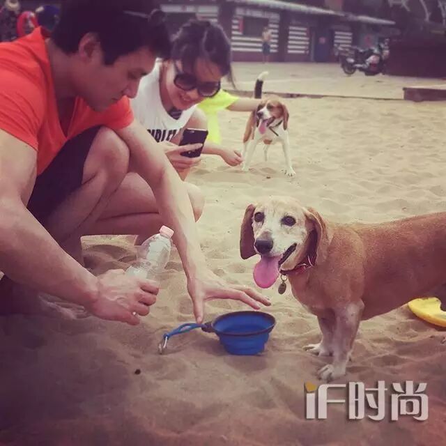 ▲他们还一起养了条长腿的腊肠犬,名字叫YOYO,从他们的照片里都能看到YOYO的身影。现在,幸福的三口之间要变成四口之家啦~