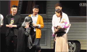 陈乔恩话剧演出时,乔任梁带着面具,在乔恩不知道的情况下出现在现场,来帮她站台。乔任梁拿下面具那一刻,乔恩开心得仰天大笑。