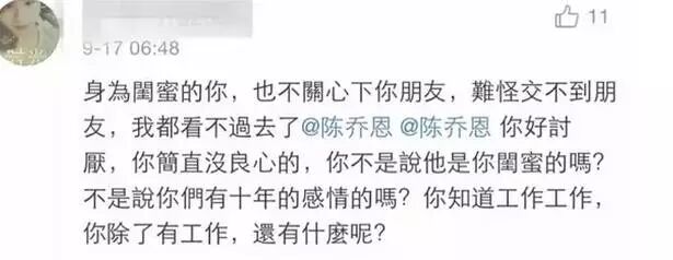 只是与乔任梁相识7年之久、3度合作的好闺蜜陈乔恩却一直没在微博发声,于是网友纷纷跑去她的微博下面开骂。