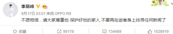 娱乐圈不少明星都发微博悼念,《加油好男儿》井柏然、李易峰、付辛博、扎西顿珠等前十选手,一起合作拍戏唱歌的明星或者还没见面的艺人也纷纷公开表达了自己的悲伤之情。