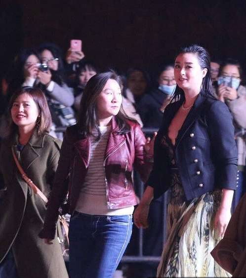 照片中,蒋欣身着黑色小西装,脸上挂着笑容,似乎心情很不错。可是尽管内搭了一条长裙,依然挡不住粗壮的手臂和丰腴的身材。