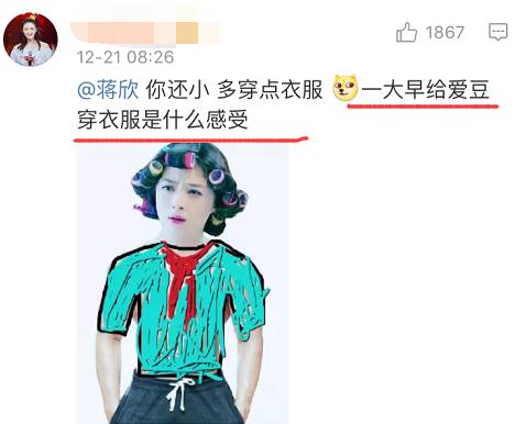 可是,再怎么自黑,也改变不了蒋欣脱离微胖界,进军肥胖界的事实。毕竟更多的时候蒋欣都是这样的↓↓↓