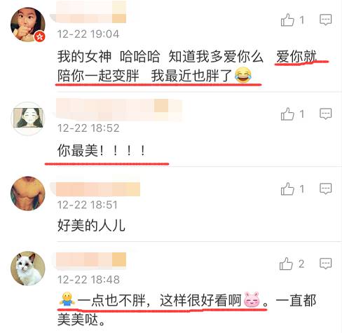 粉丝们也纷纷表示“一点也不胖”,更有要陪女神一起胖的,实力诠释“爱你就陪你变胖”的追星要义。