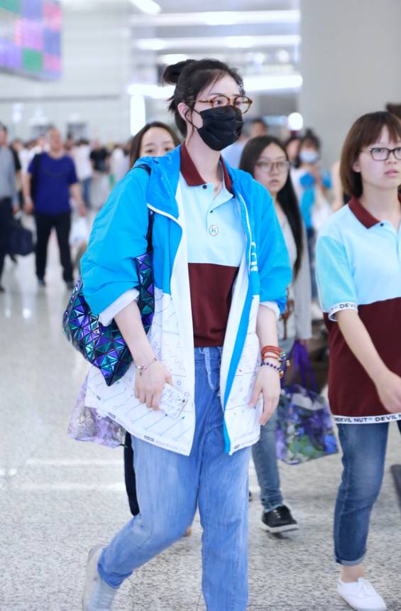 前不久在机场被拍时也是肤白貌美的瘦星人↓