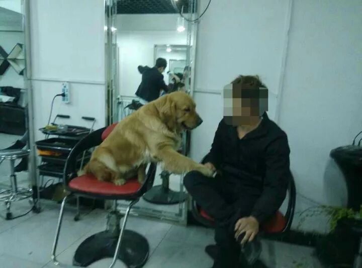 他姐姐去了找不到狗,把不远处理发店的狗趁主人不注意就“偷领”了回来,