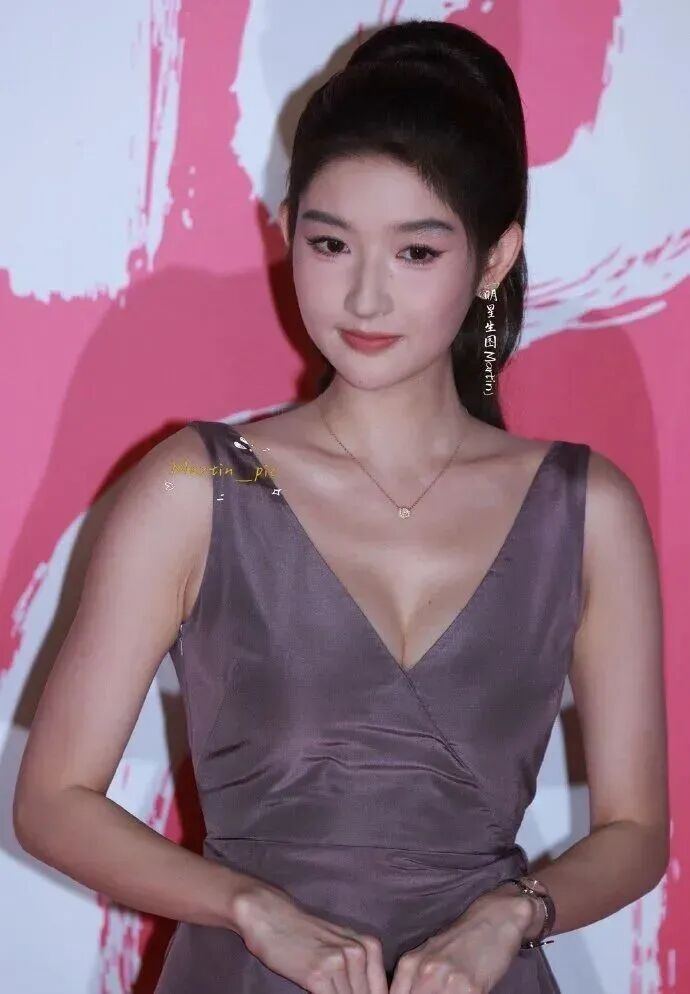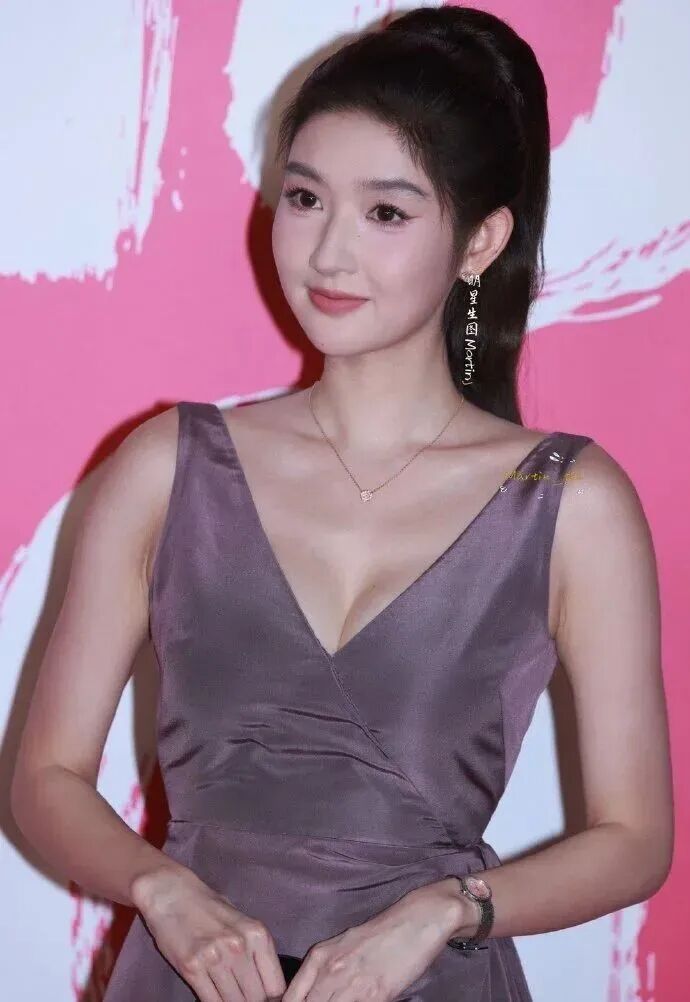 想象一下,她那高马尾一扎,利落又精致,简直是教科书级别的“我就是这么飒”!一身深紫色礼服,衬得她皮肤白皙透亮,仿佛自带打光板,这可是行走的“美白广告”啊!