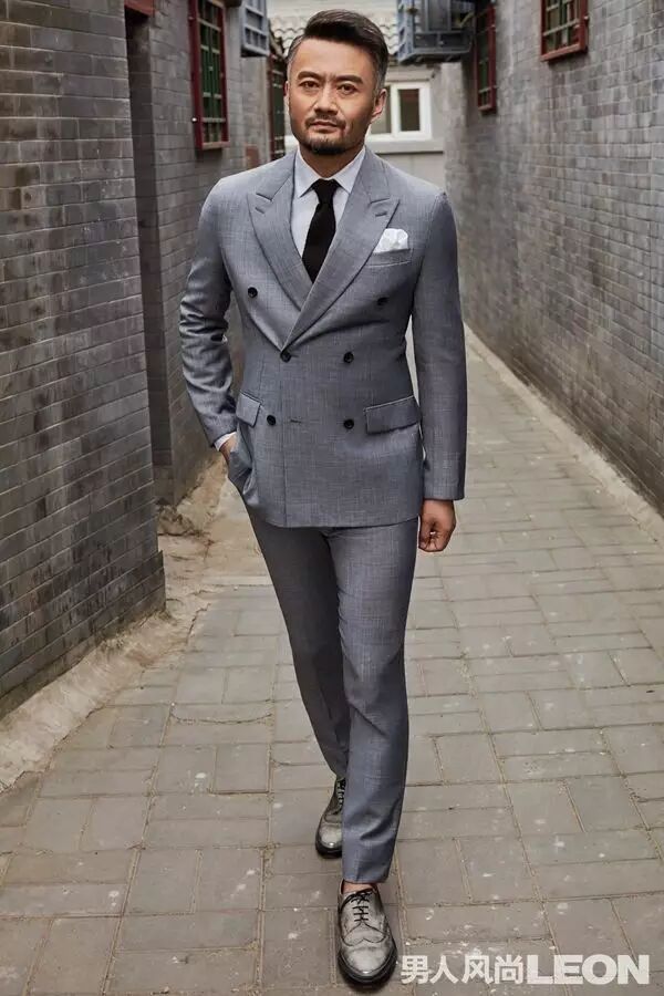 双排扣西装,古典而一丝不苟,灰色的潇洒感和修身剪裁的利落印象,无一不表现出成熟男人的游刃有余。对于今天的大叔来说,服装已不再是点缀,更是身份卡,线条与颜色的选择好似生意与原则,只有单行道,不进则退,马虎不得。华丽的外衣包裹之下才是内涵的成熟。西装、衬衫、西裤/ 均为Louis Vuitton 口袋巾/ Boss 正装鞋/ J.M.Weston