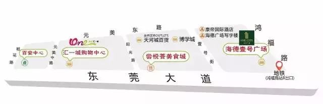 海德东方商业本着“传递人文关怀,营造幸福商圈”为服务宗旨,以“第一国际”为核心,由海德壹号广场、财富中心、汇一城、百安中心组成,面积达百万平米,涵盖大型购物中心、商业步行街、五星级酒店、甲级写字楼、国际商务港、国际公寓等业态,是东莞地段最核心、业态最齐全、功能最复合、配套最完善的城市综合体。