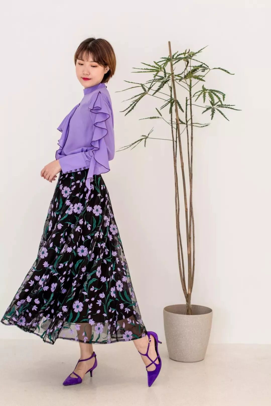 面料柔软飘逸,将薄纱雪纺与印花绉纱混搭