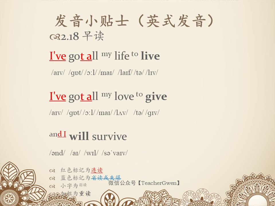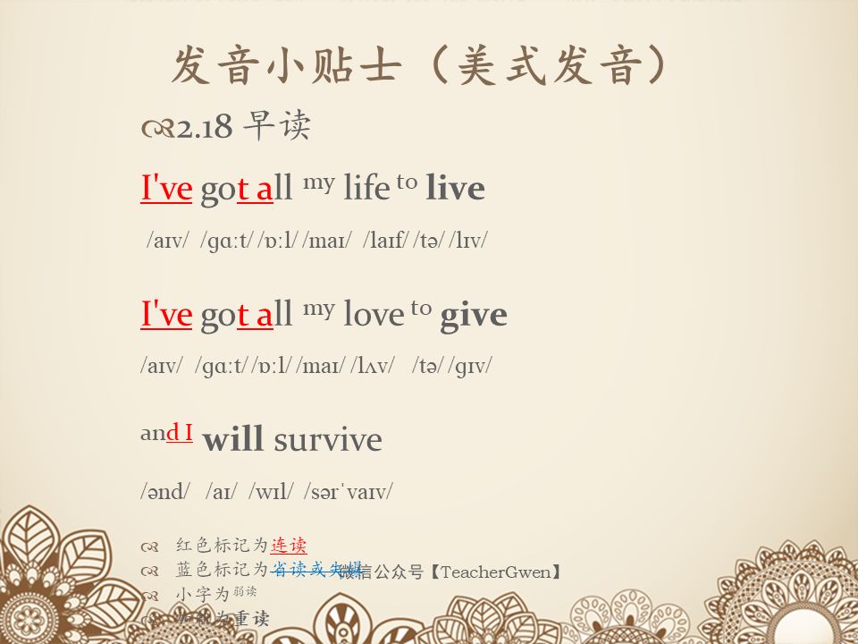 今日早读背景乐:( BGM: Gloria Gaynor - I Will Survive)