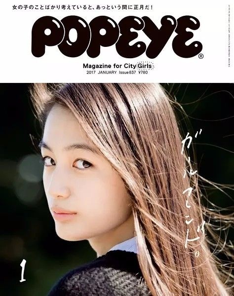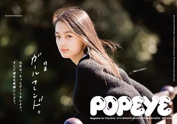 有看过《Popeye》的朋友,一定对她不会感到陌生,翻出 2017年1月刊,封面就是这位八木莉可子,说到这里看到封面可能就会恍然大悟,原来就是她。