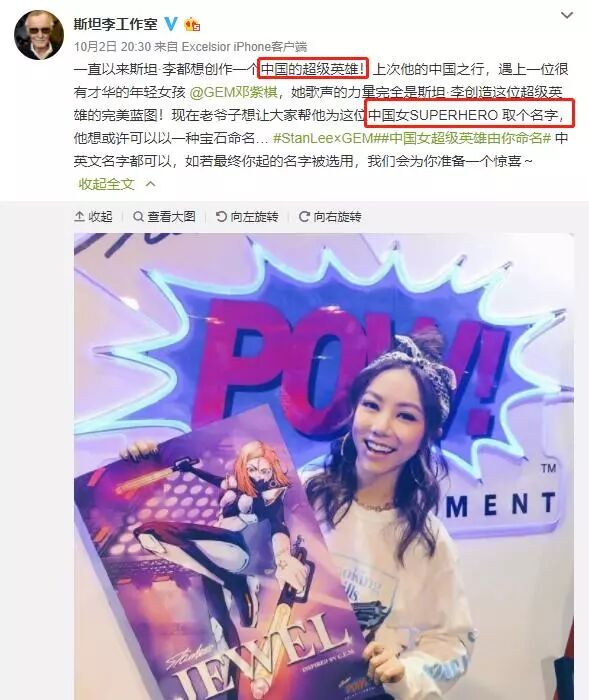 也有网友认为邓紫棋原本的英文名字GEM就很符合了,gem本身就有宝石的意思,你们觉得这个属于中国的超级英雄叫什么名字好呢?