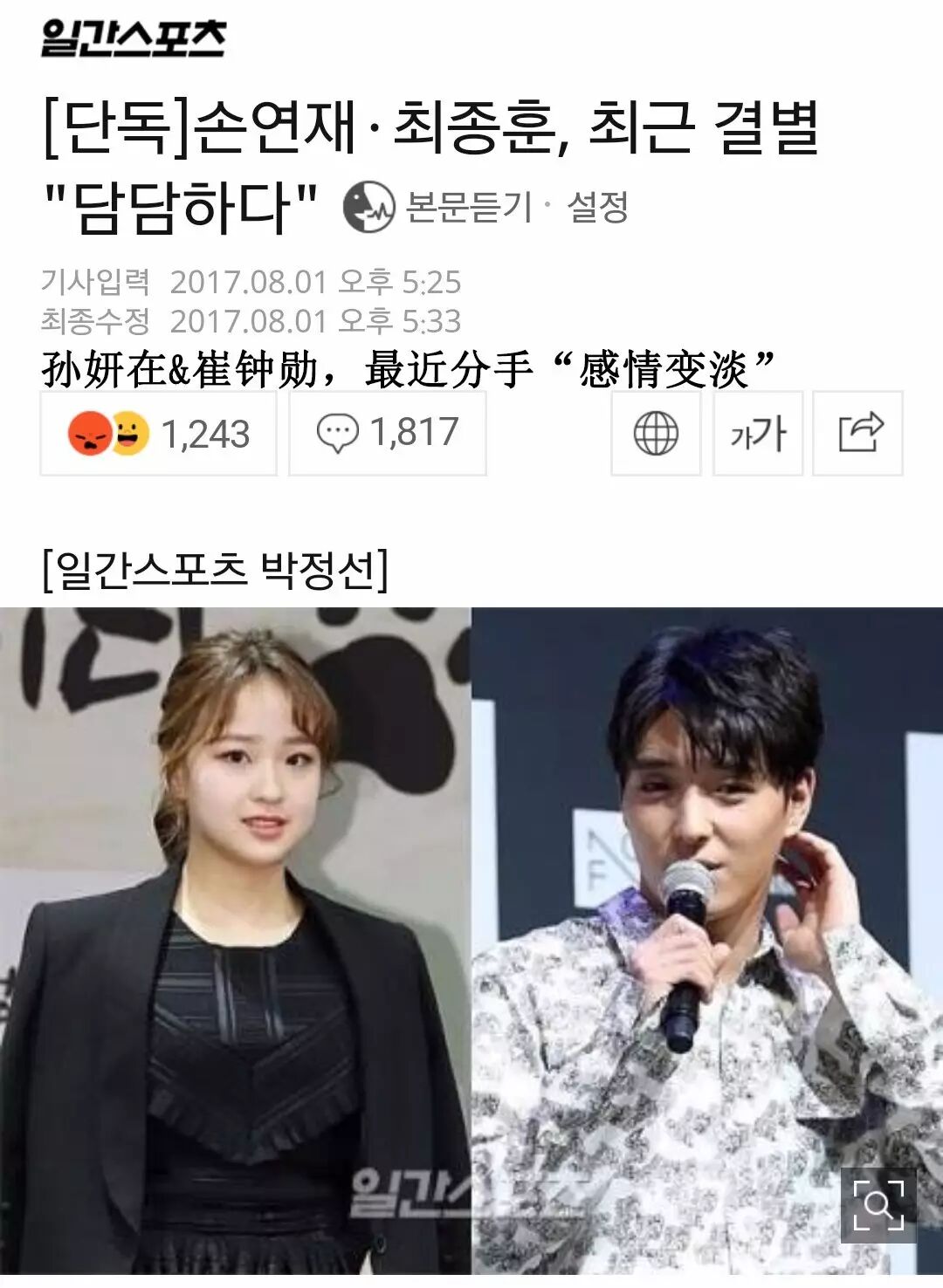 上个月27日播出的《HT》中,崔钟勋公开了与孙妍在的爱情故事,然鹅,就在节目播出四天之后,两人便被曝分手一事,引来观众的遐想。