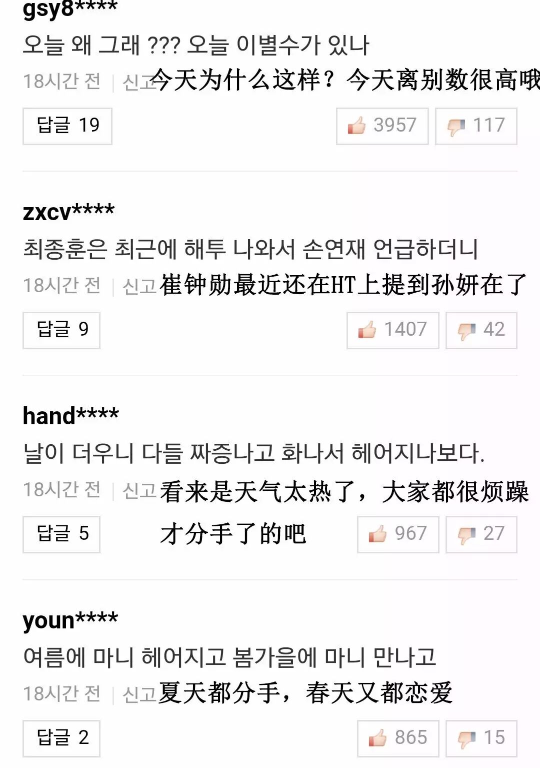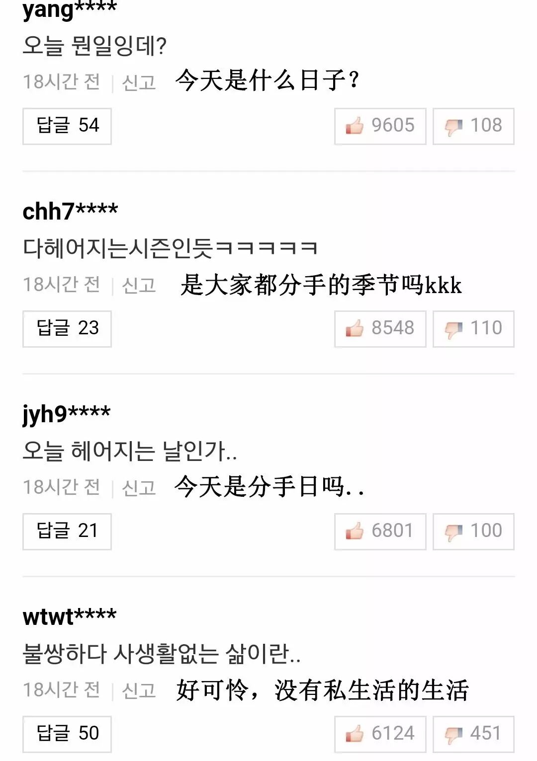 很明显,当韩网友在看到这一对分手的消息之后,自然会把UIE与康男那对联系在一起,于是,昨天就变成了“分手日”。