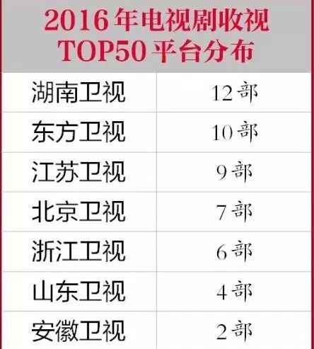 从播出平台看,湖南卫视依然是最强势的单频道平台,去年播出的全部13部剧中,除了1部献礼剧外,其他12部剧均进入了收视TOP50榜单。但是湖南卫视一家独大的局势已经有所改变,去年收视率排名前十的剧中,只有4部来自湖南卫视。