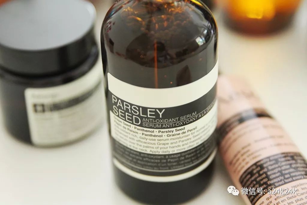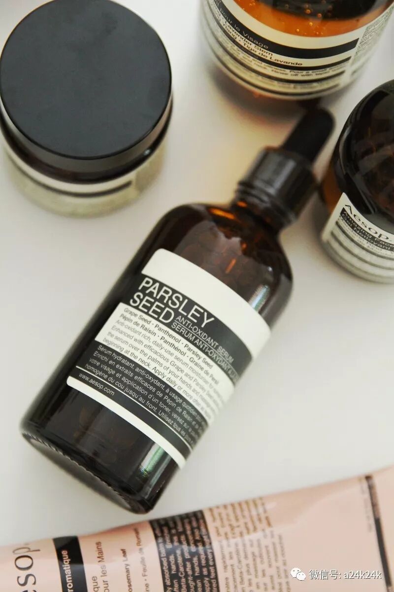 Aesop的精华就那么几瓶,有抗老抗皱抗氧化要求呢,那就只有这瓶香芹籽抗老可以满足以上诉求。成分中除了香芹籽还有葡萄籽,两大抗氧化SR联手抗老级别净化升一级。