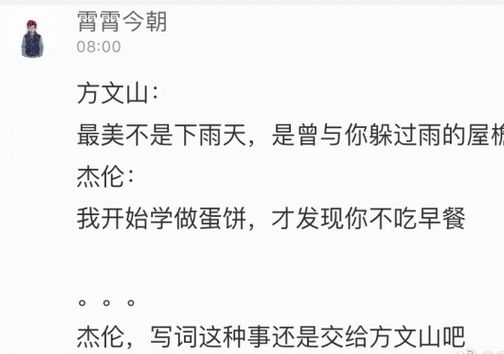 有粉丝吐槽,说杰伦,以后写词的事儿还是交给文山吧。